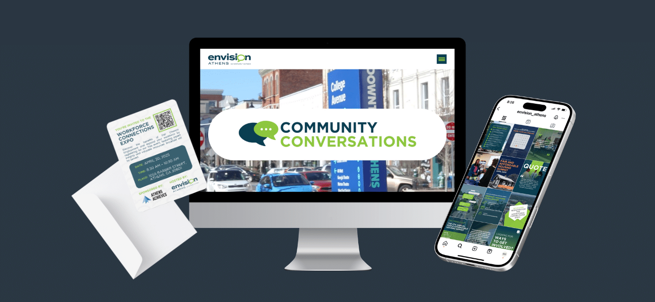 Envision Athens is a nonprofit focused on community development in Athens-Clarke County. When they launched Community Conversations, a nine-month educational event series bringing residents together around local issues, they needed more than a freelancer and more than a full internal team. They needed strategic leadership and full-service execution.