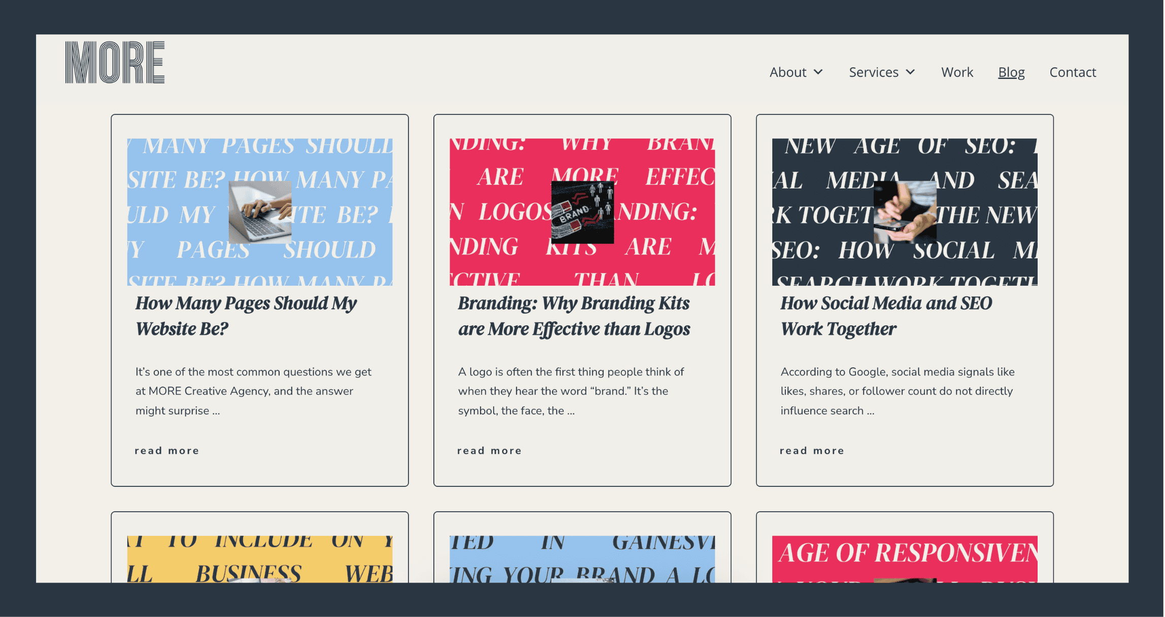 At MORE creative agency, we help businesses turn content into a growth engine. With keyword research, blog strategy, and full-service SEO, we can help you create content that works as hard as you do.